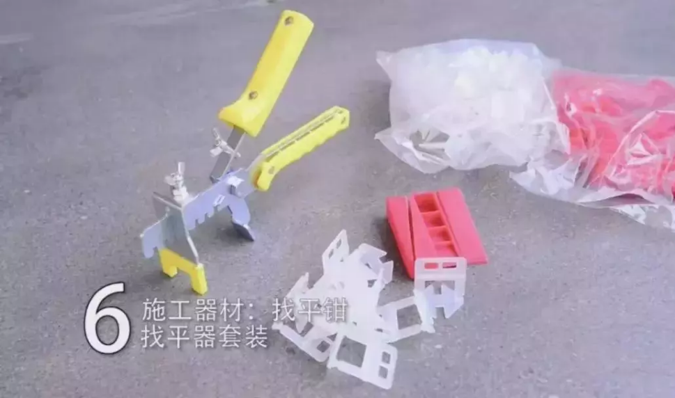 首先我们要准备瓷砖胶、三孔玻璃吸、锯齿状抹灰器、灰勺、橡胶锤、靠尺、找平钳套装、清洁抹布。